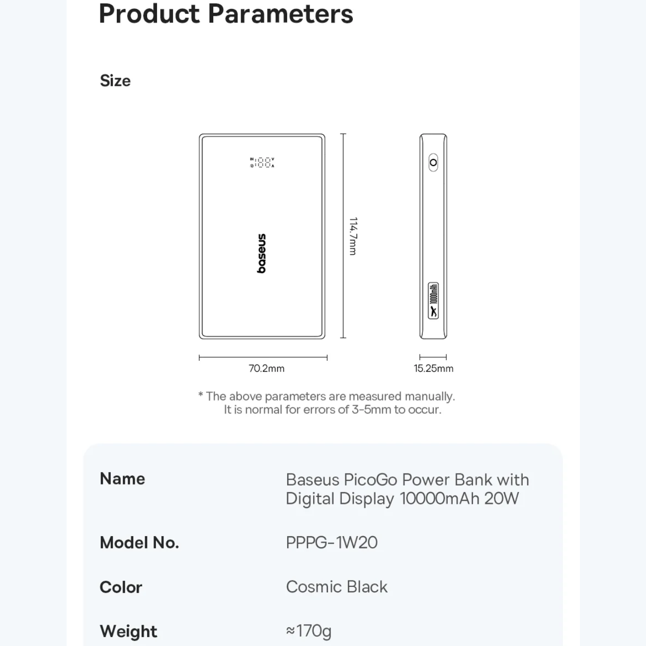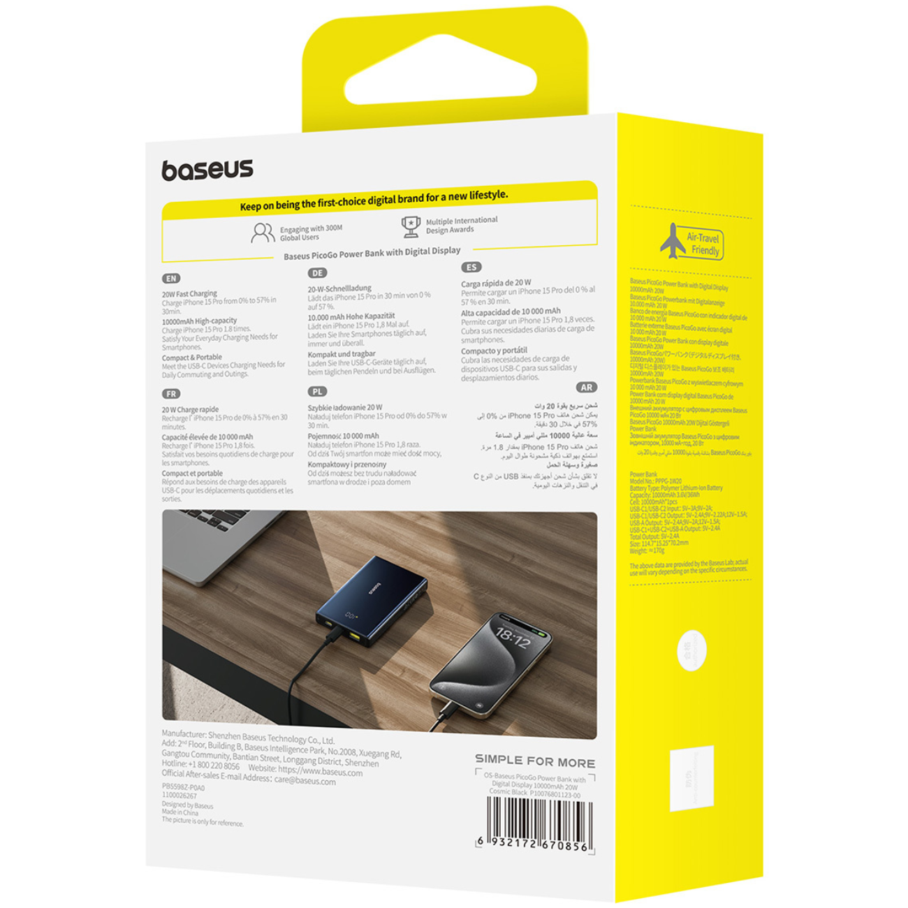 Baseus PicoGo 10000mAh Power Bank with Digital Display 20W Fast Charging P10076801123-00