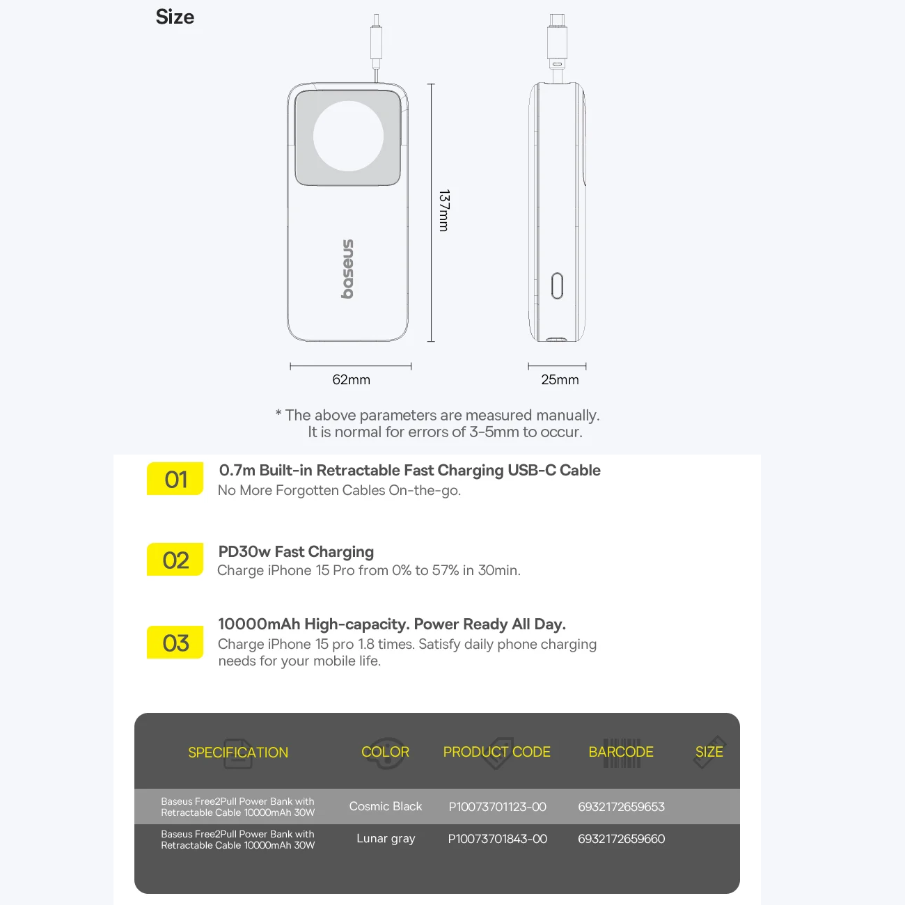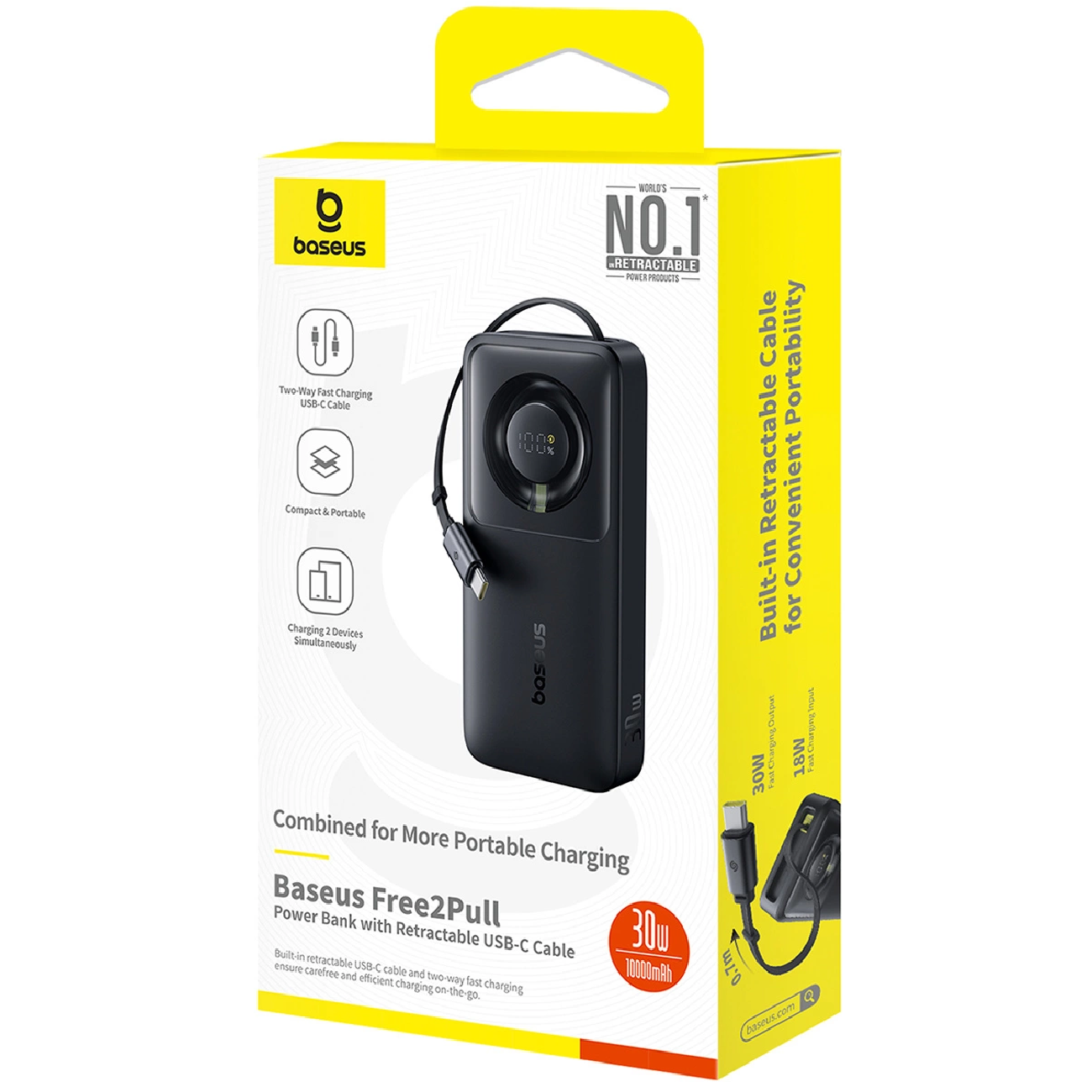 Baseus Free2Pull Power Bank with Retractable Cable 10000mAh 30W PPSS1030 P100709