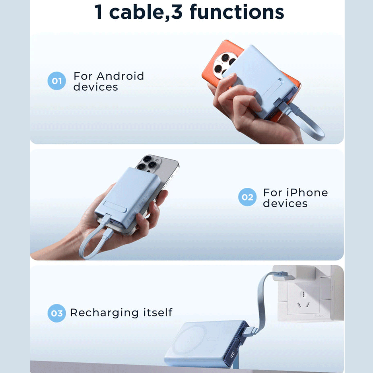 JOYROOM JR-PBM01 20W Power Bank 10000mAh with Built-in Cable&Kickstand