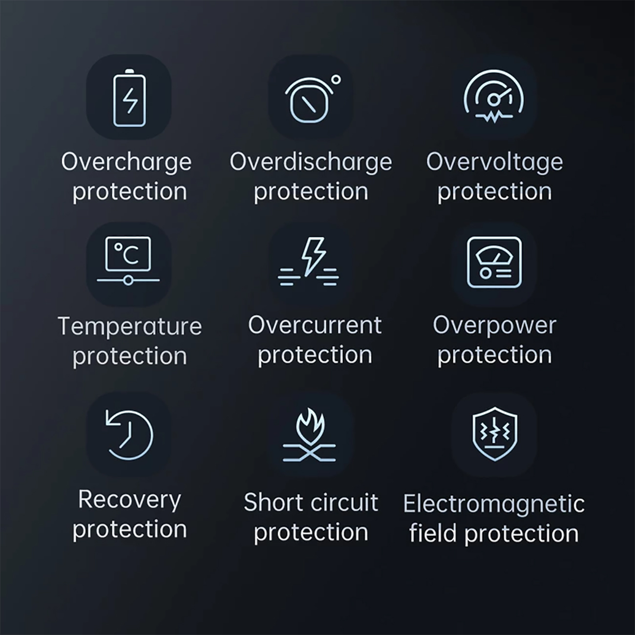 | مجهز به تراشهای هوشمندبا 9 قابلیت محافظتی | حفاظت در برابر جریان بیش از حد، ولتاژ بیش از حد و حرارت بیش از حد |