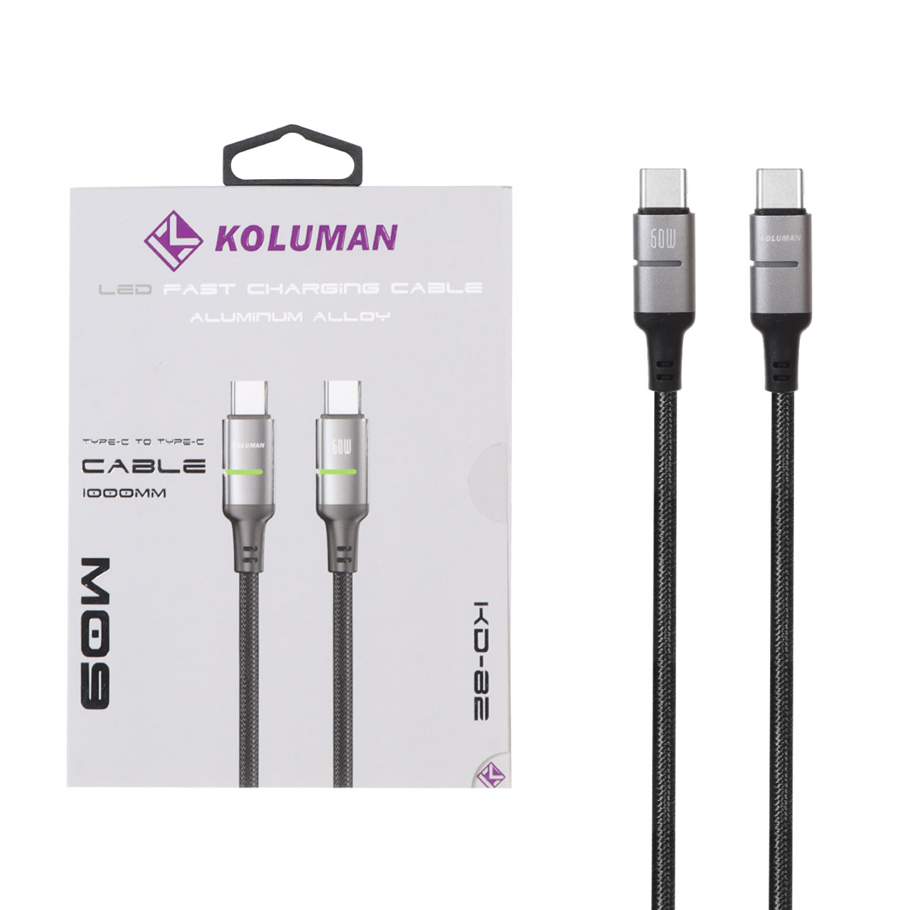 کابل شارژ فست Koluman Type-C to Type-C مدل KD-82 60W - مشکی (گارانتی یکساله PMC)