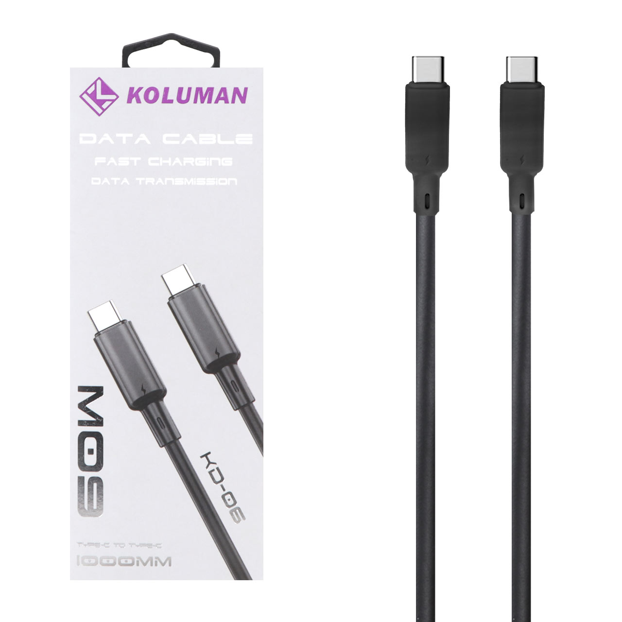 کابل شارژ فست Koluman Type-C to Type-C مدل KD-06 60W - مشکی (گارانتی یکساله PMC)