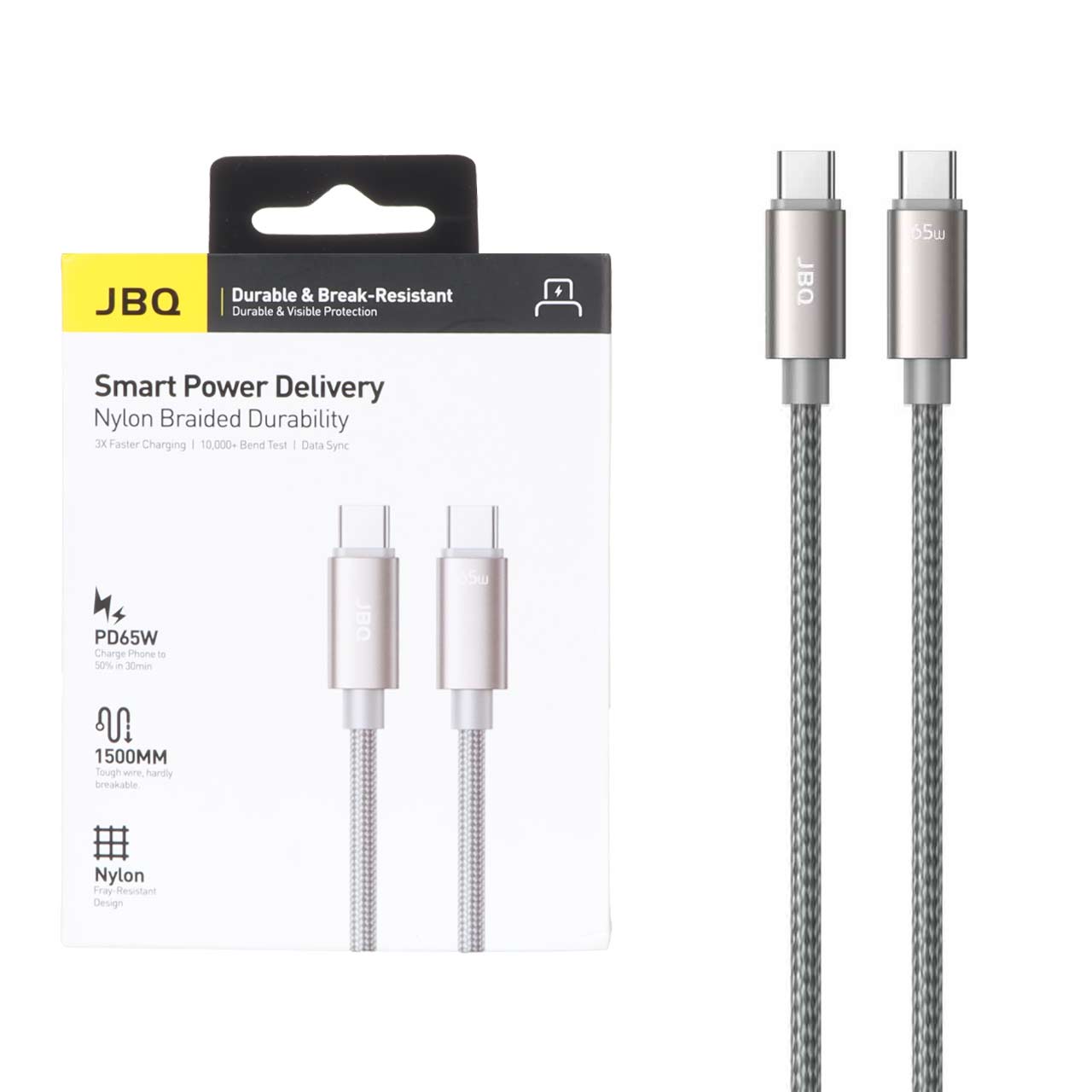 کابل شارژ فست JBQ Type-C To Type-C مدل A990204 65W - طوسی (گارانتی یکساله رصاصی)