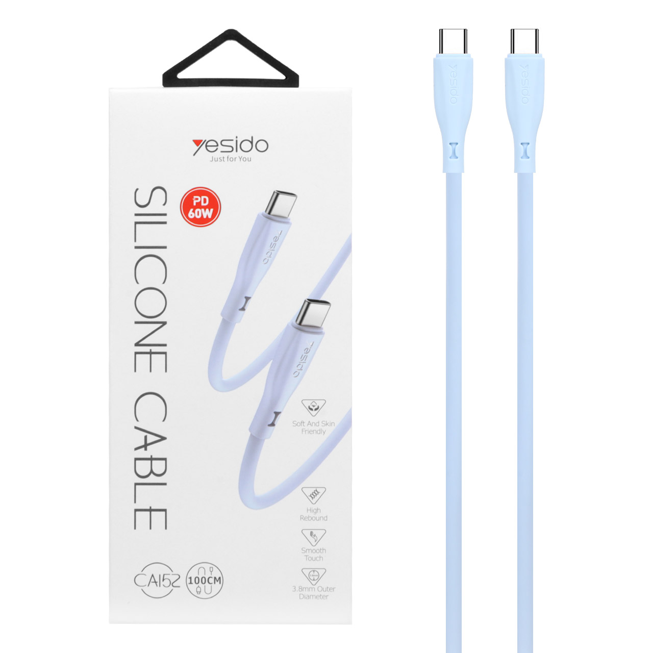 کابل شارژ PD و فست yesido Type-C to Type-C مدل CA152 - آبی