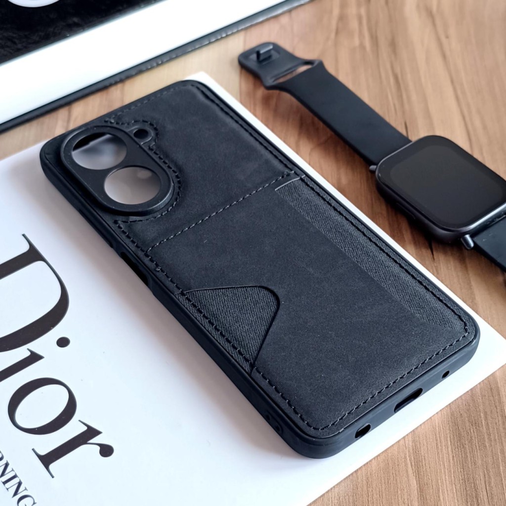 این قاب گوشی از چرم مصنوعی ساخته شده و دور آن از TPU نرم که به خوبی از گوشی شما در هنگام ضربه محافظت می کند. همچنین دارای محافظ لنز دوربین است. این قاب خوش دست و باریک است و به راحتی کارت بانکی درون آن قرار می گیرد.