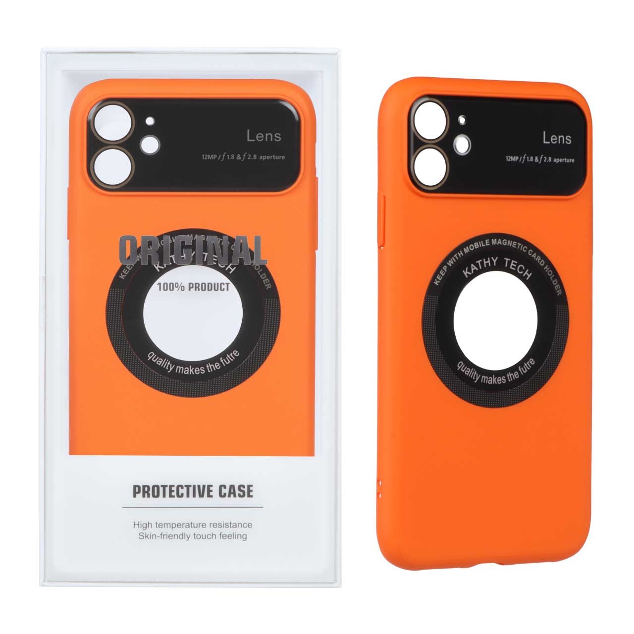 قاب اورجینال Kathy Tech محافظ لنز شیشه ای Magsafe کلاسیک Apple iPhone 11 - نارنجی (پک دار)