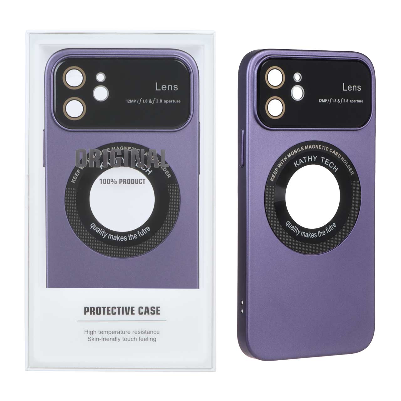 قاب اورجینال Kathy Tech محافظ لنز شیشه ای Magsafe کلاسیک Apple iPhone 12 - بنفش (پک دار)