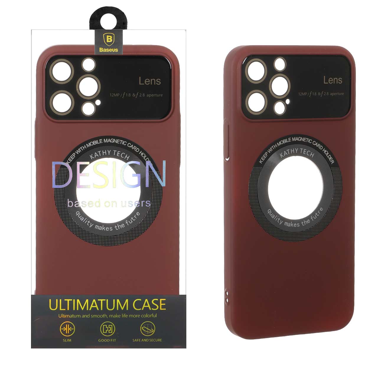 قاب اورجینال Kathy Tech محافظ لنز شیشه ای Magsafe کلاسیک Apple iPhone 12 Pro - عنابی (پک دار)
