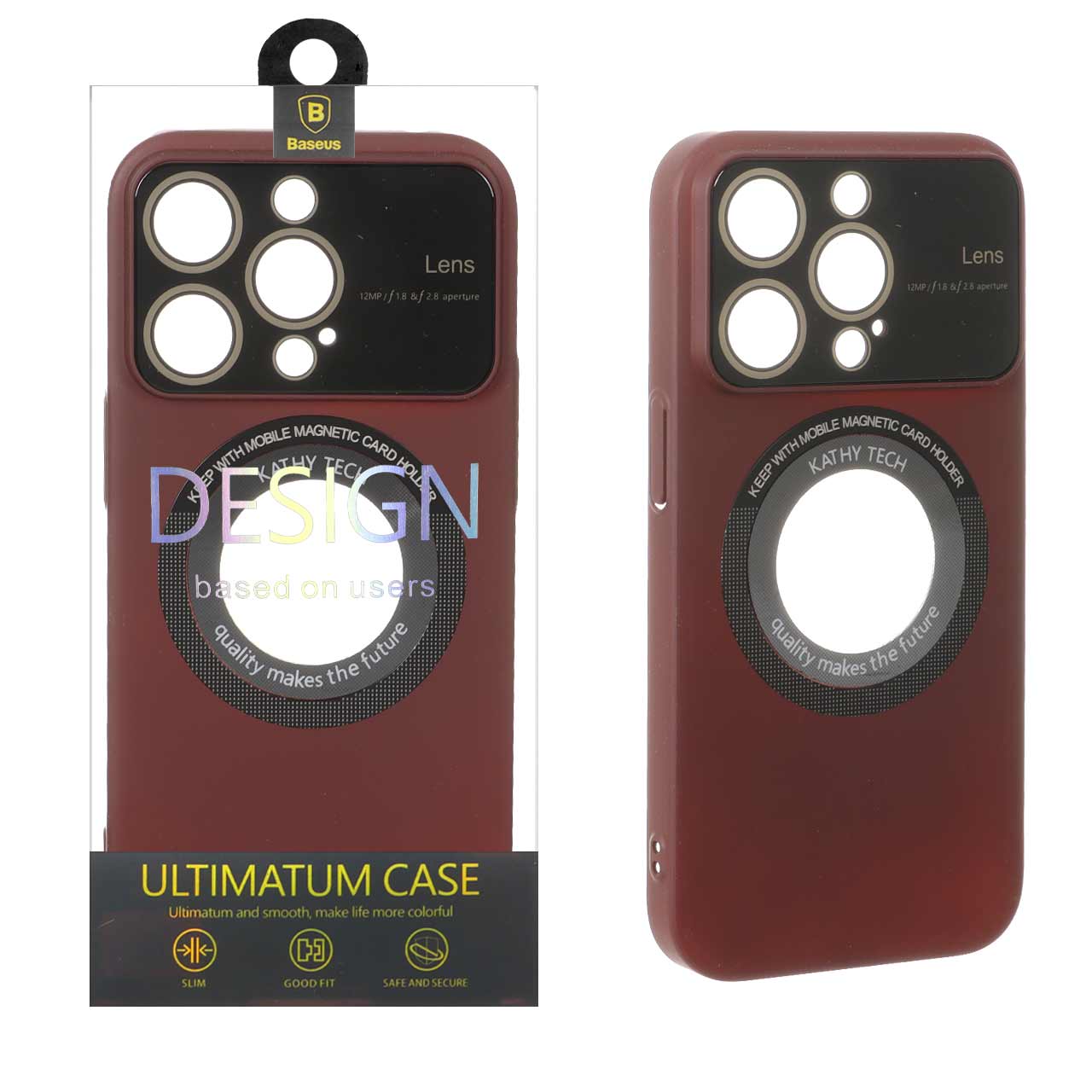 قاب اورجینال Kathy Tech محافظ لنز شیشه ای Magsafe کلاسیک Apple iPhone 14 Pro - عنابی (پک دار)