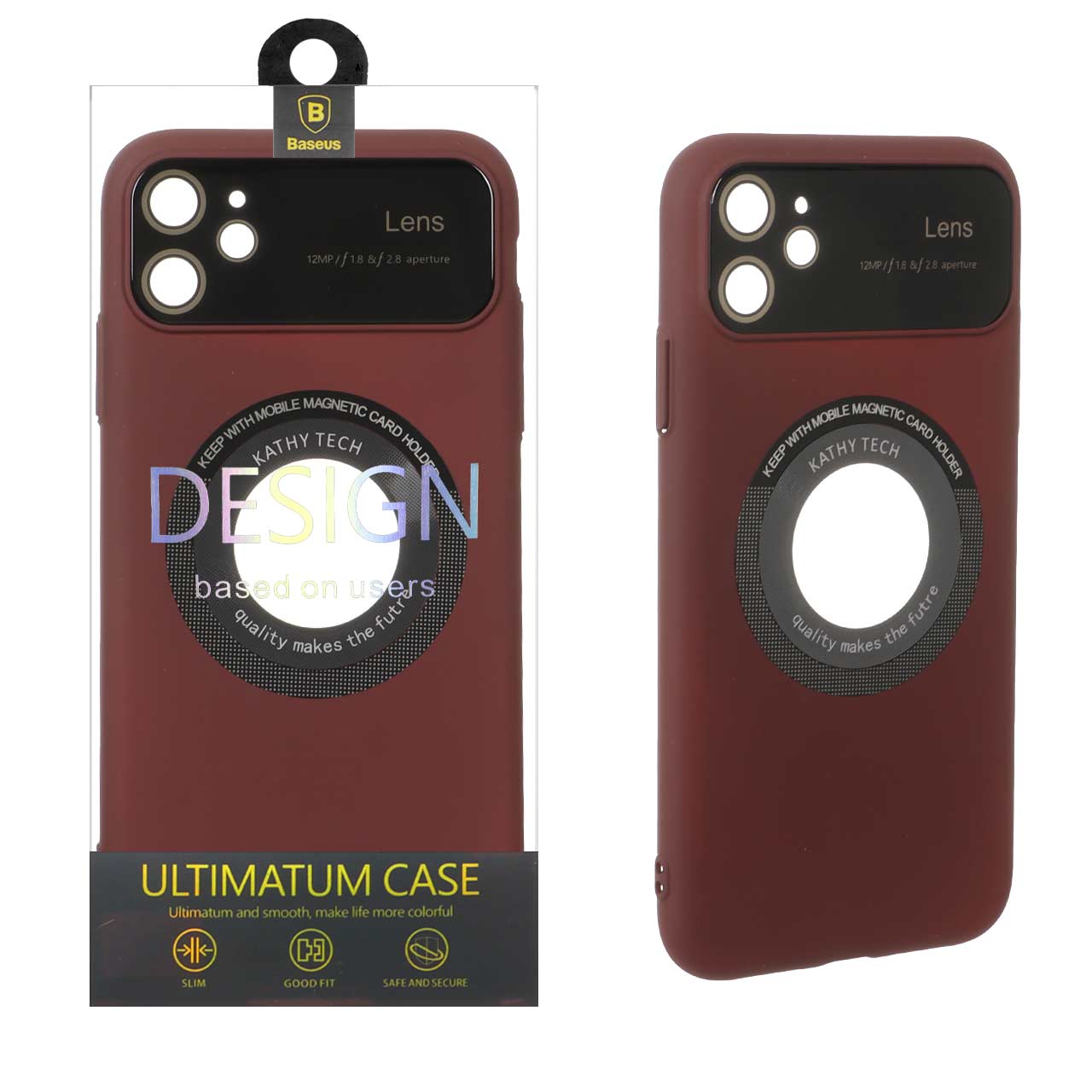 قاب اورجینال Kathy Tech محافظ لنز شیشه ای Magsafe کلاسیک Apple iPhone 11 - عنابی (پک دار)