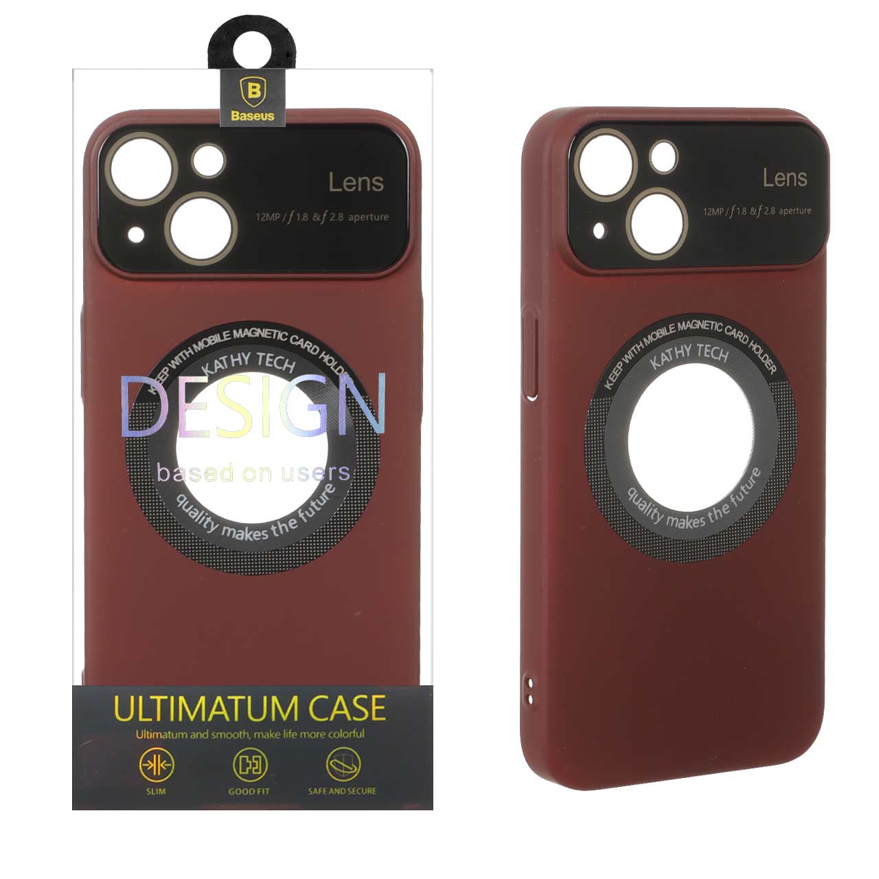 قاب اورجینال Kathy Tech محافظ لنز شیشه ای Magsafe کلاسیک Apple iPhone 13 / iPhone 14 - عنابی (پک دار)