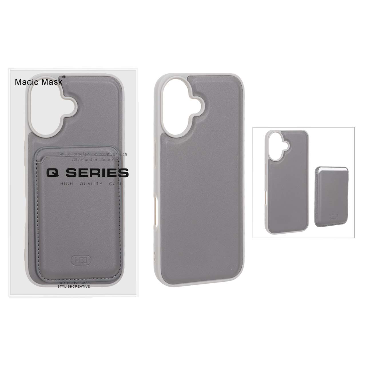 قاب اورجینال HDD چرمی Magsafe با ست جاکارتی مگنتی Apple iPhone 16 - خاکستری (پک دار) - MPS
