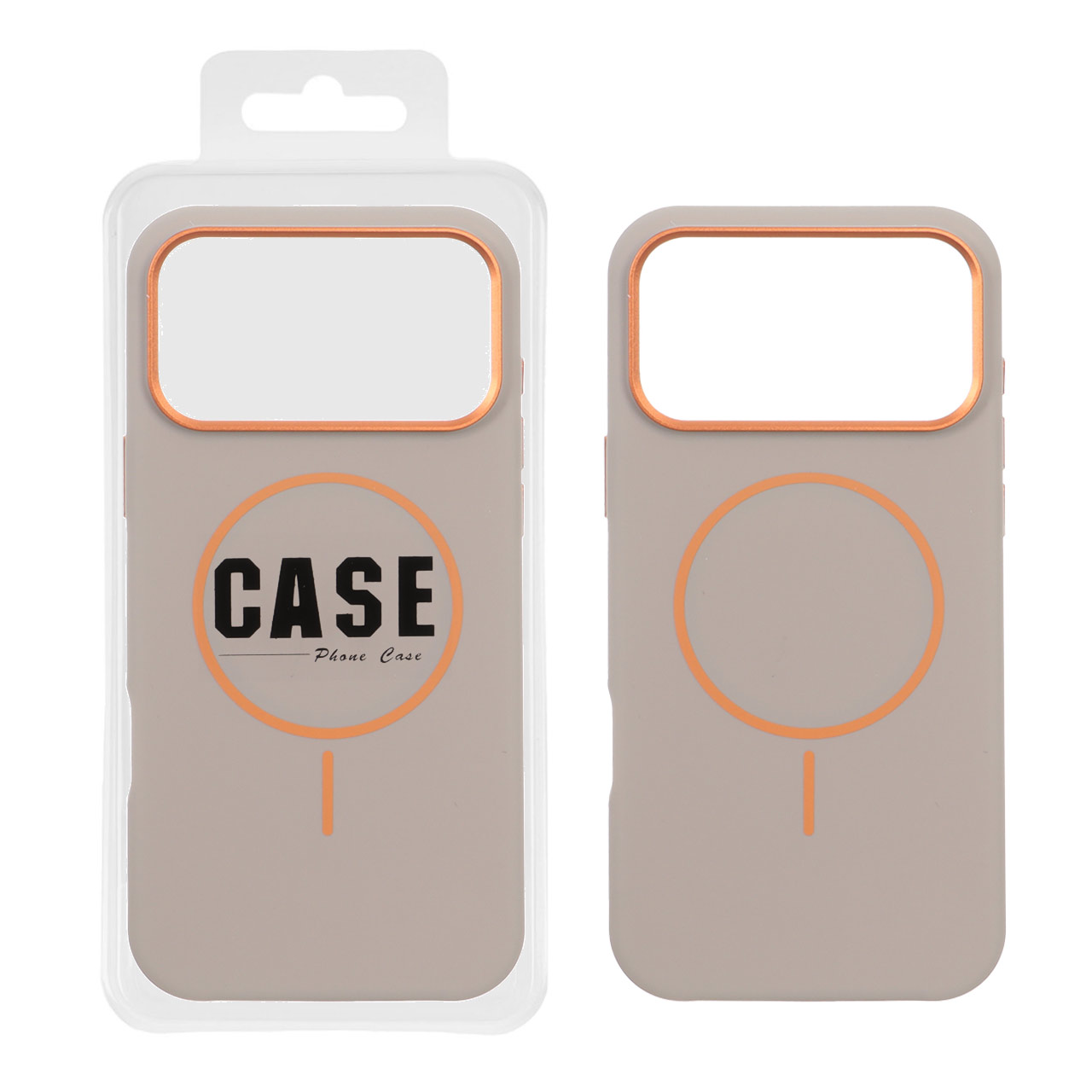 قاب سیلیکونی پاک کنی اورجینال درجه یک MagSafe لنز فلزی Apple iPhone 17 Pro Max - خاکی (پک دار) - MPS