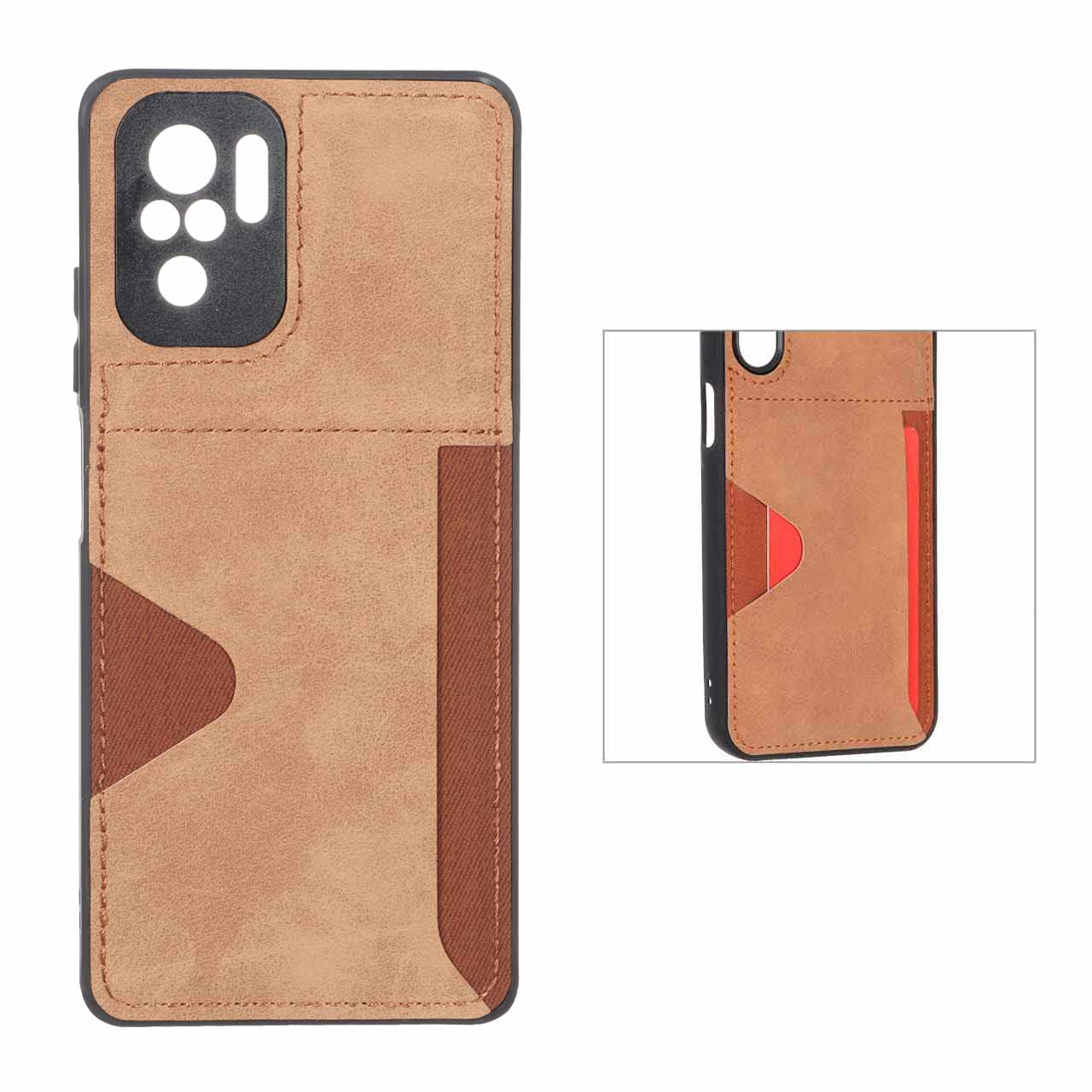 قاب جیر دوخت دار جاکارتی محافظ لنزدار Xiaomi Redmi Note 10 4G / Redmi Note 10S / Poco M5S - قهوه ای