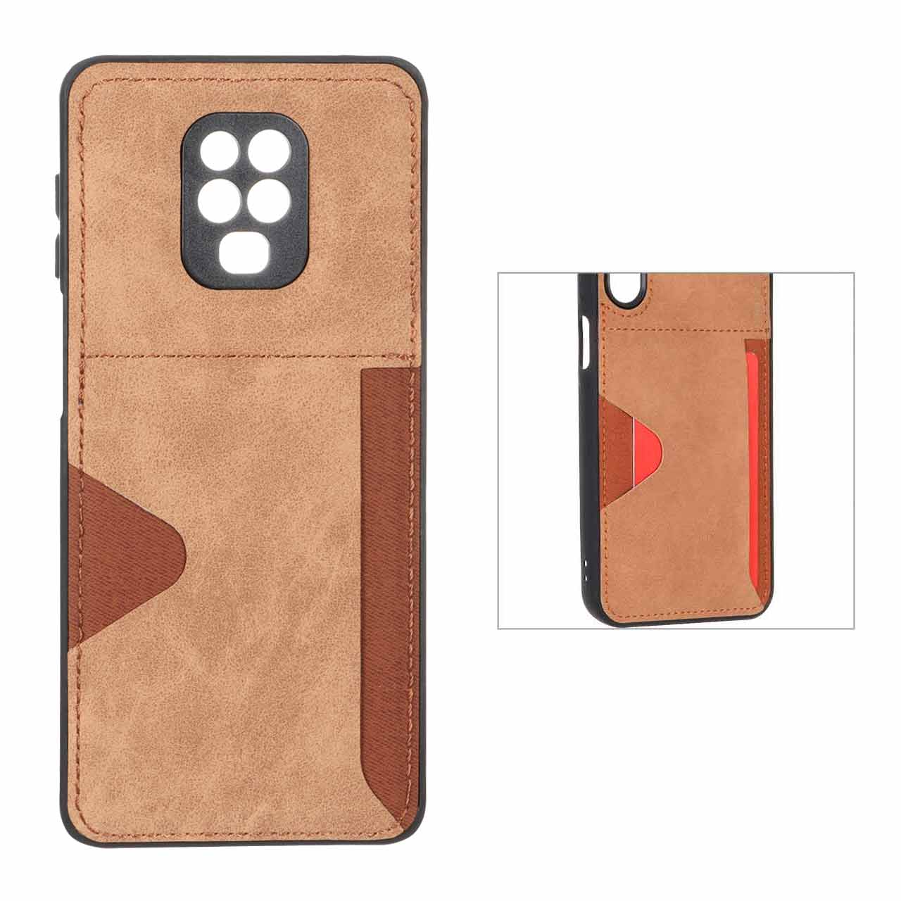 قاب جیر دوخت دار جاکارتی محافظ لنزدار Xiaomi Redmi Note 9S / Redmi Note 9 Pro / Redmi Note 9 Pro Max - قهوه ای