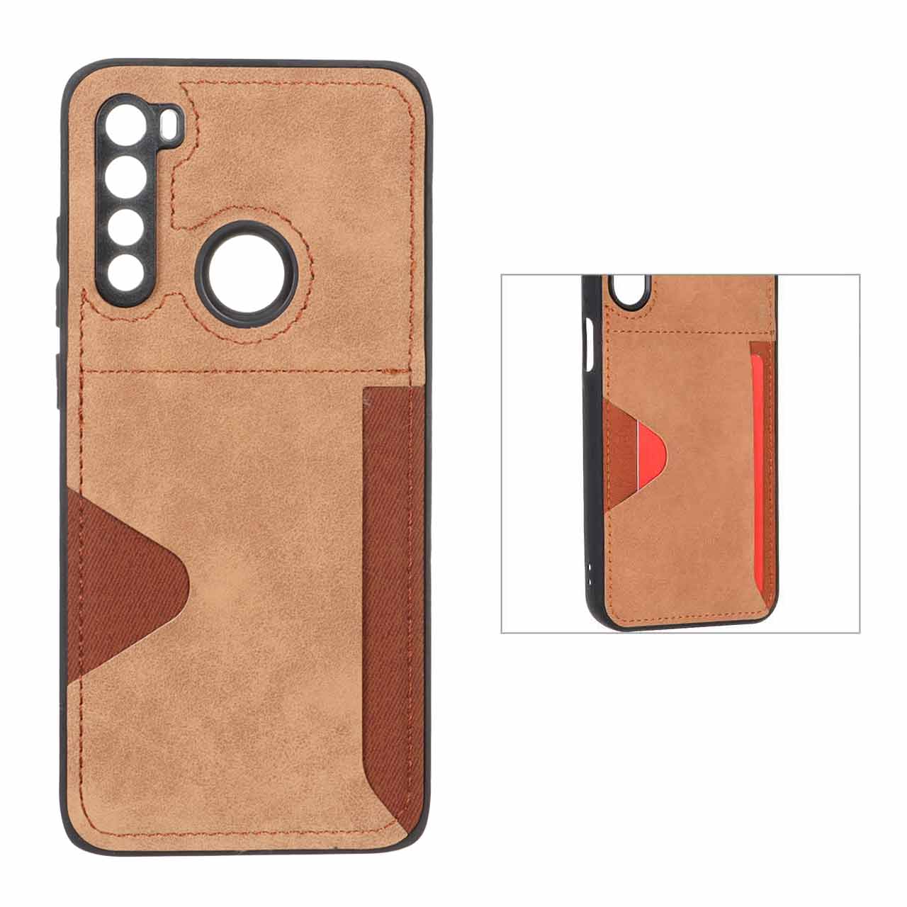 قاب جیر دوخت دار جاکارتی محافظ لنزدار Xiaomi Redmi Note 8 - قهوه ای