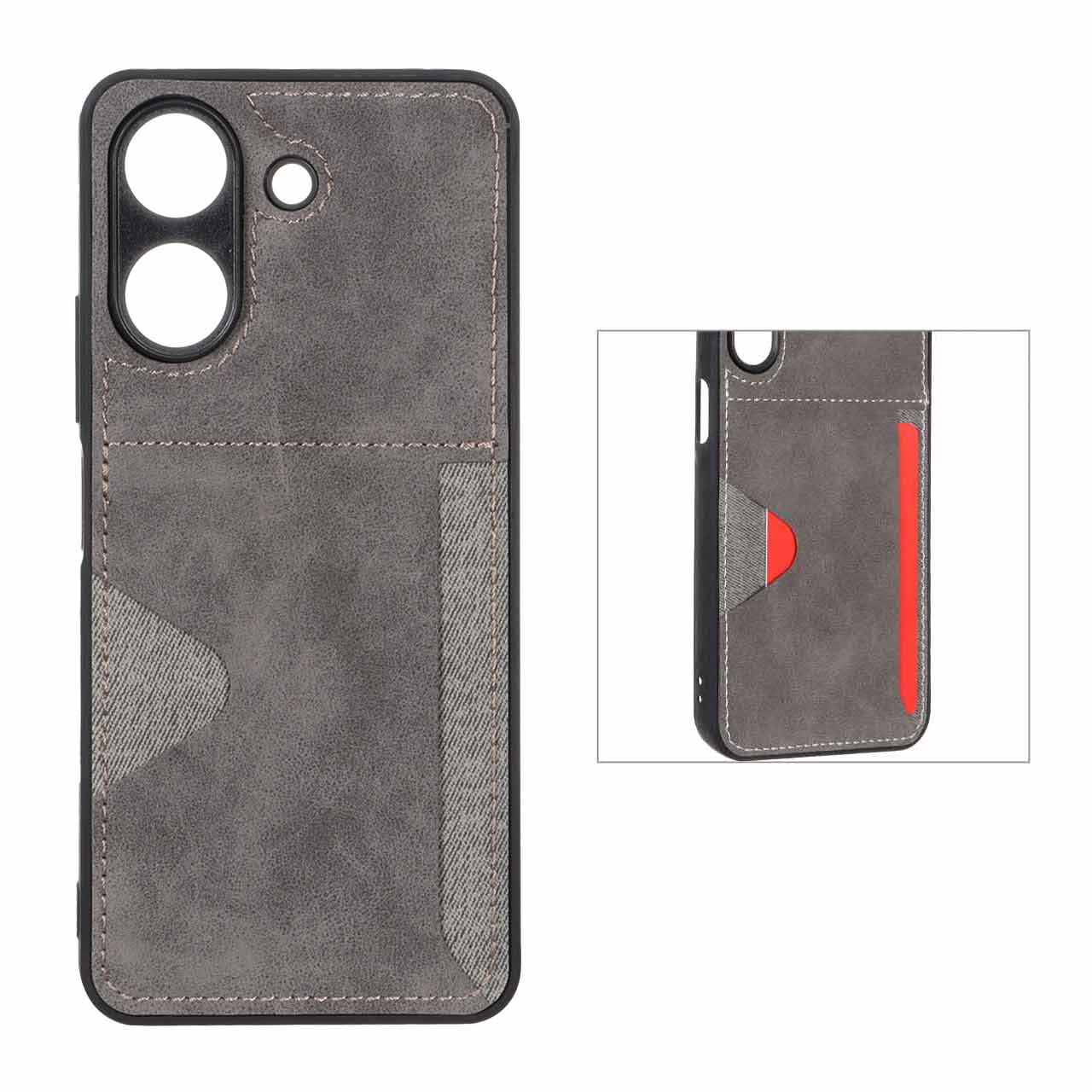 قاب جیر دوخت دار جاکارتی محافظ لنزدار Xiaomi Redmi 13C / Poco C65 - خاکستری
