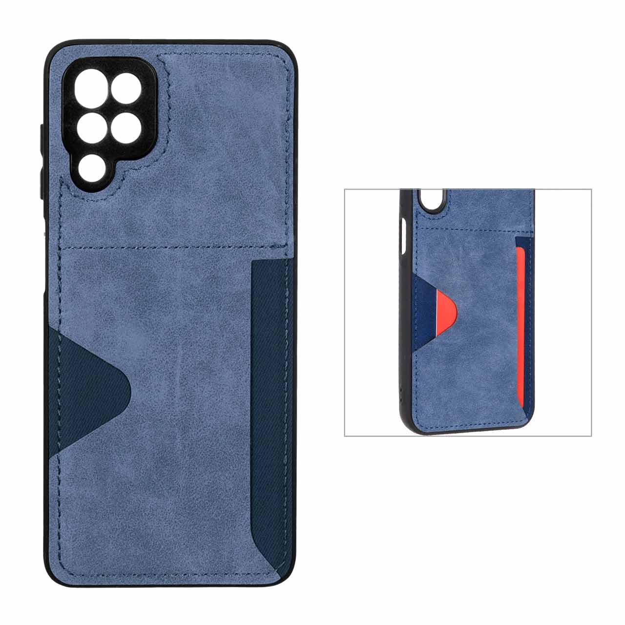 قاب جیر دوخت دار جاکارتی محافظ لنزدار Samsung Galaxy A12 / M12 / F12 - سرمه ای