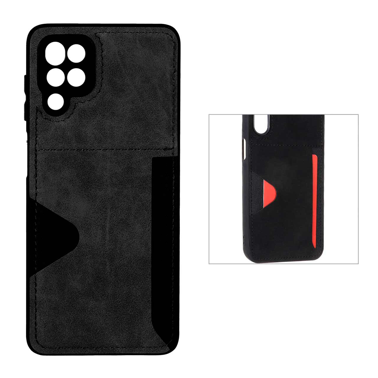 قاب جیر دوخت دار جاکارتی محافظ لنزدار Samsung Galaxy A12 / M12 / F12 - مشکی