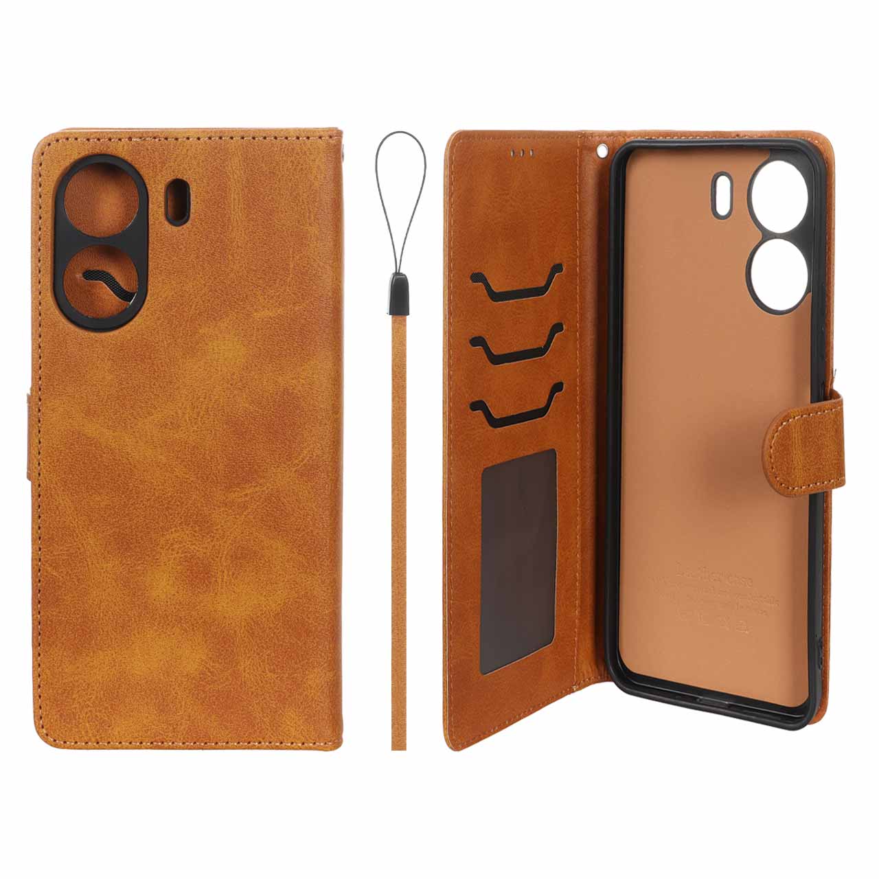 کیف موبایل مگنتی درجه یک داخل خز MNC Plus مدل Xiaomi Redmi 13C / Poco C65 - عسلی