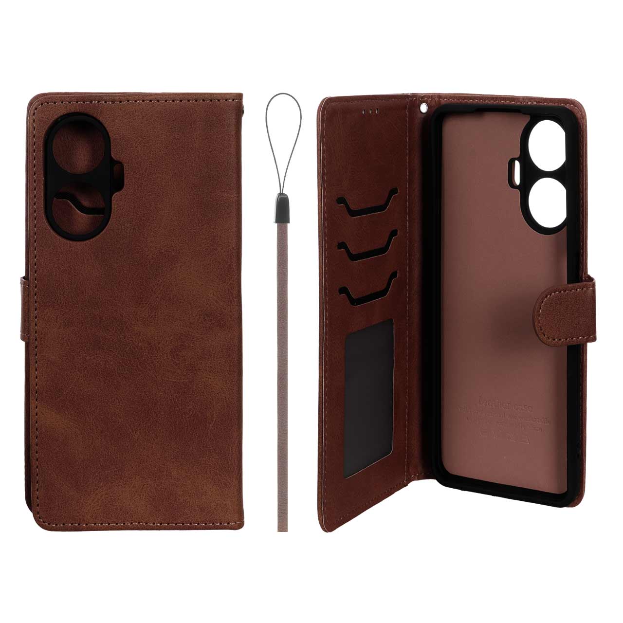 کیف موبایل مگنتی درجه یک داخل خز MNC Plus مدل Realme C55 - قهوه ای