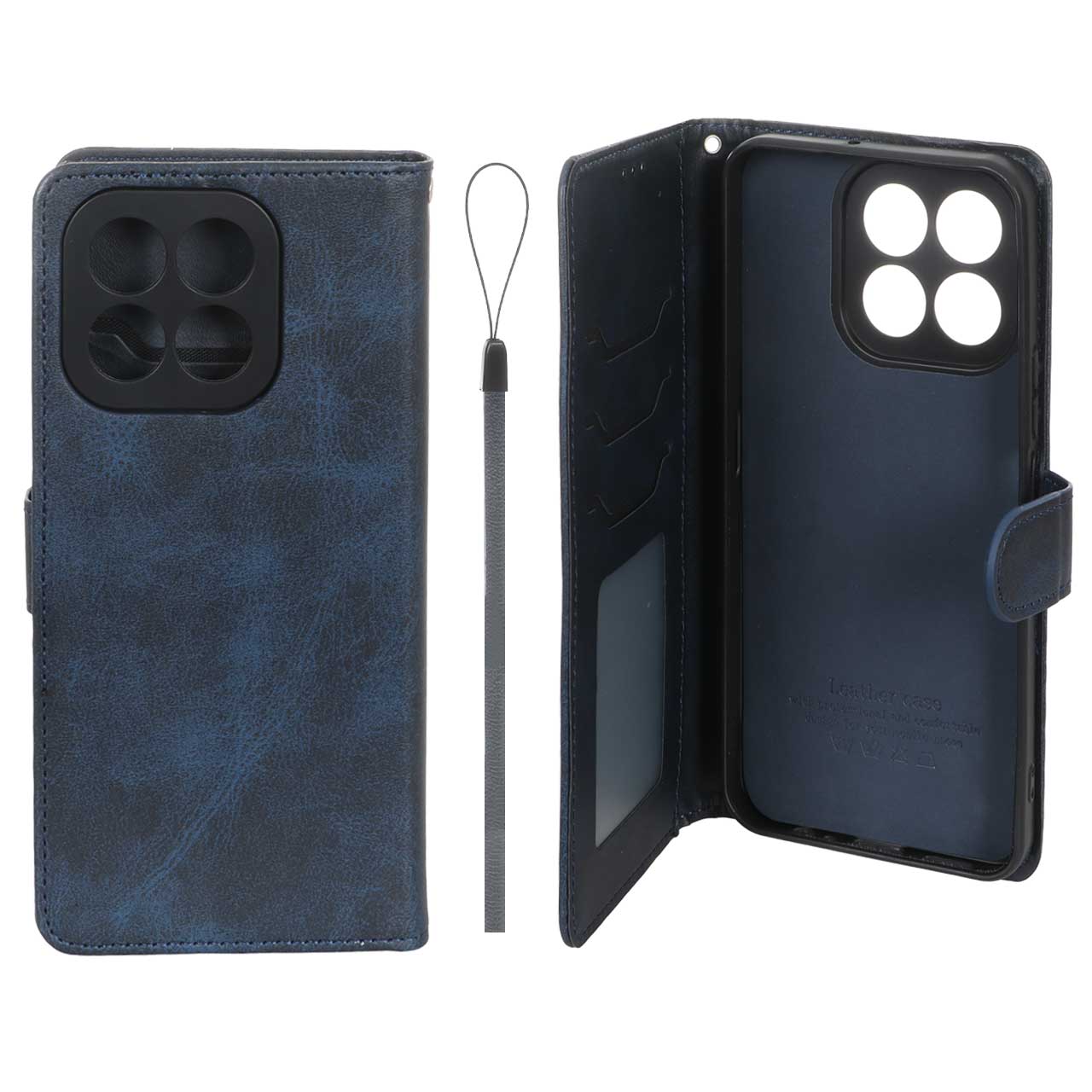 کیف موبایل مگنتی درجه یک داخل خز MNC Plus مدل Honor X6c - سرمه ای