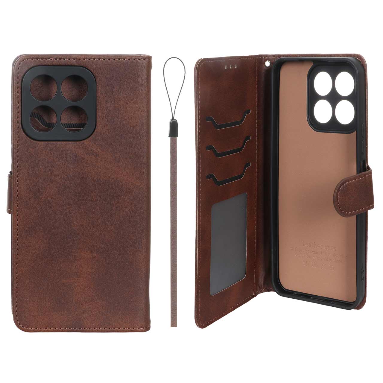 کیف موبایل مگنتی درجه یک داخل خز MNC Plus مدل Honor X6c - قهوه ای