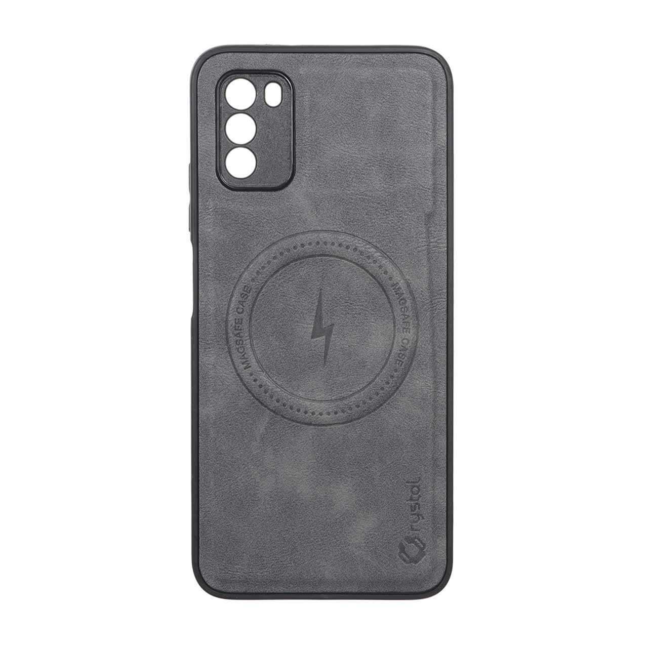 قاب Crystal طرح چرم MagSafe محافظ لنزدار Xiaomi Poco M3 - خاکستری مشکی