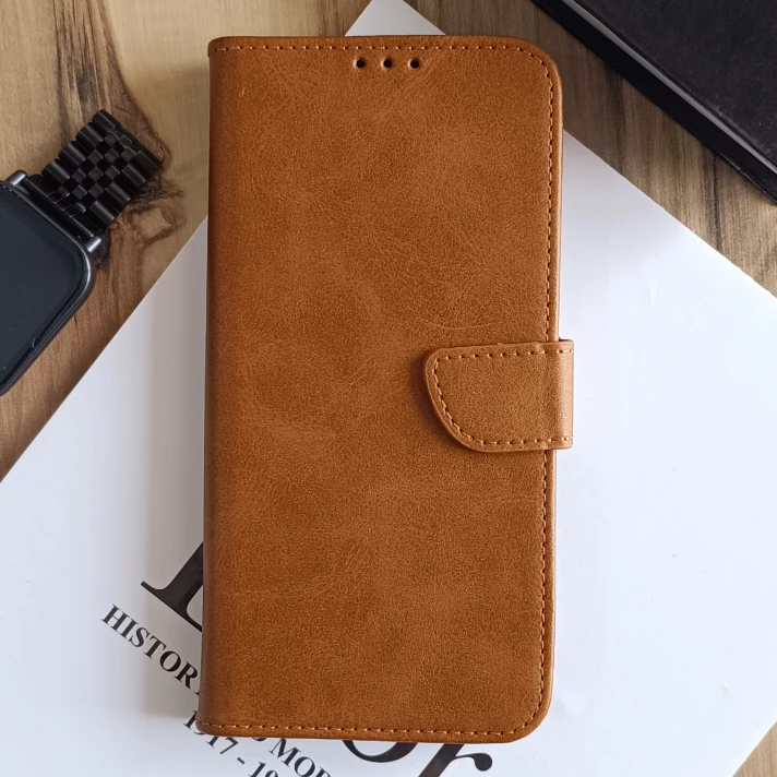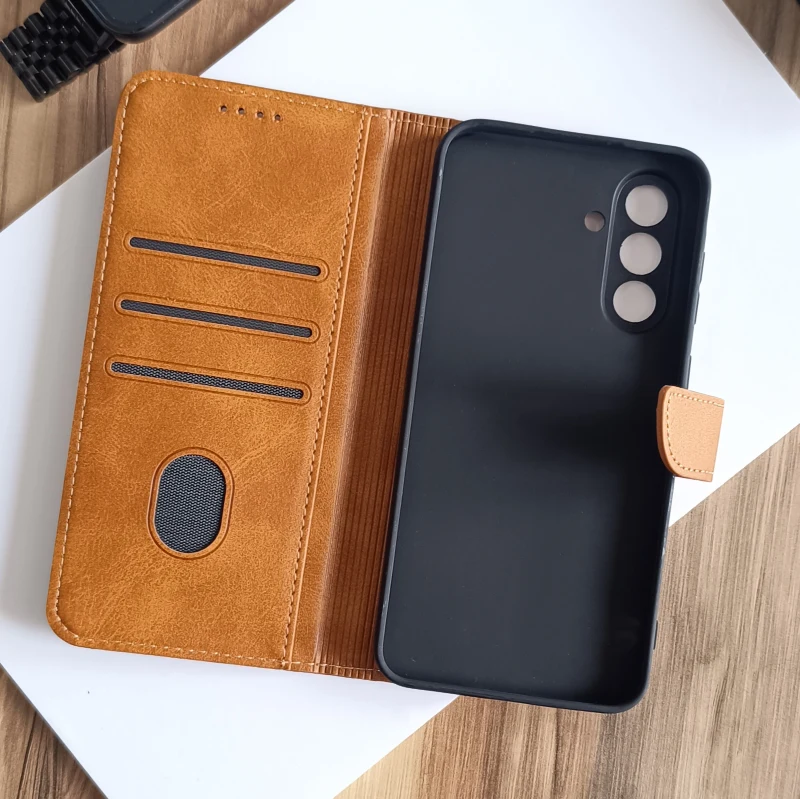 کیف چرمی موبایل مگنتی محافظ لنز دار Samsung Galaxy A26/ A17 - عسلی