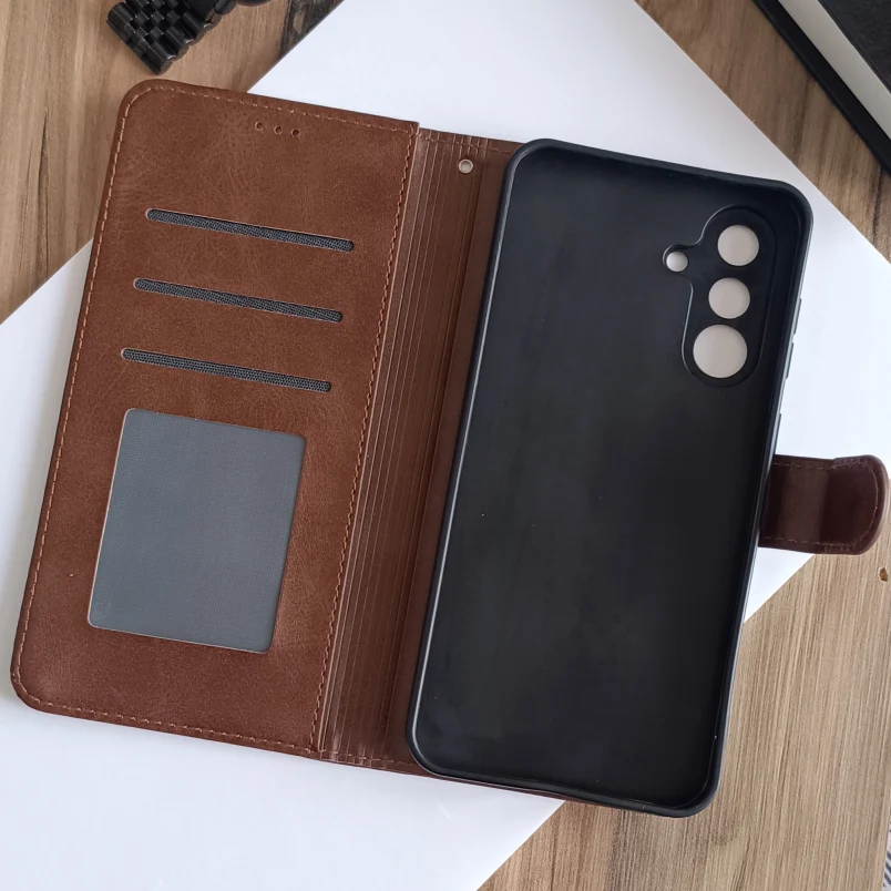 کیف چرمی موبایل مگنتی محافظ لنز دار  Samsung Galaxy A26/ A17 - قهوه ای