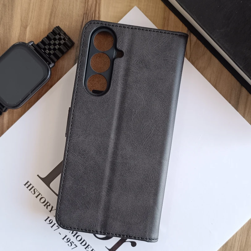 کیف چرمی موبایل مگنتی محافظ لنز دار  Samsung Galaxy S24 FE - مشکی