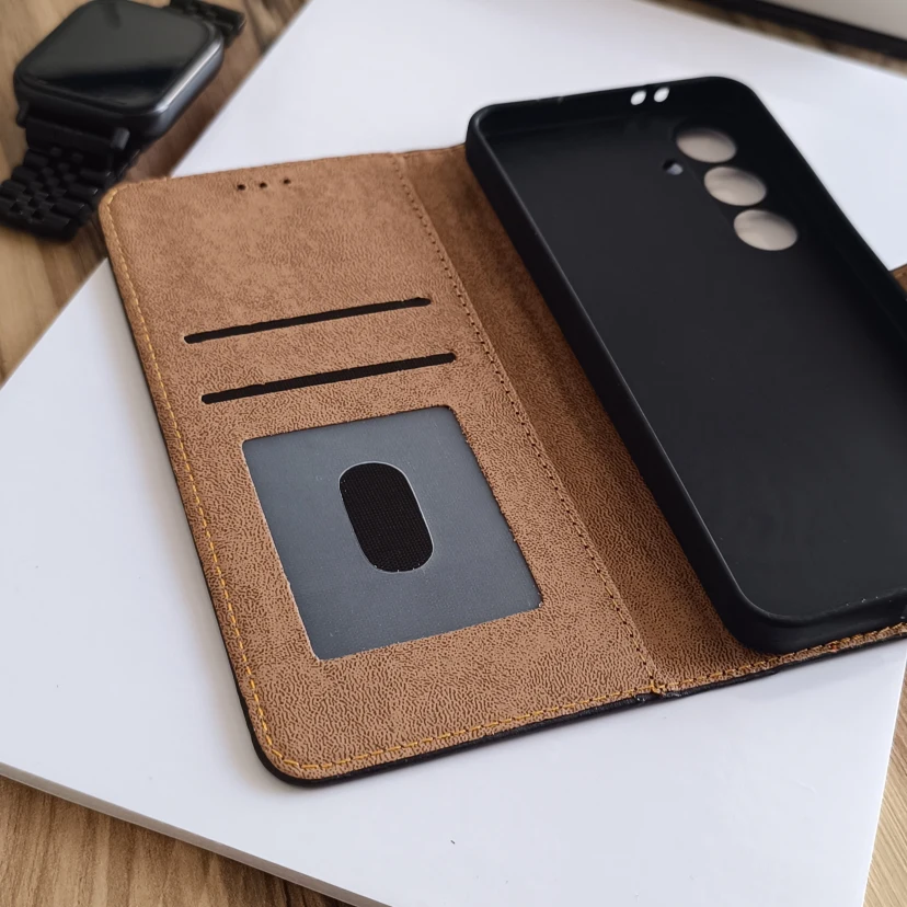 کیف چرمی موبایل مگنتی محافظ لنز دار Samsung Galaxy S24 FE - مشکی