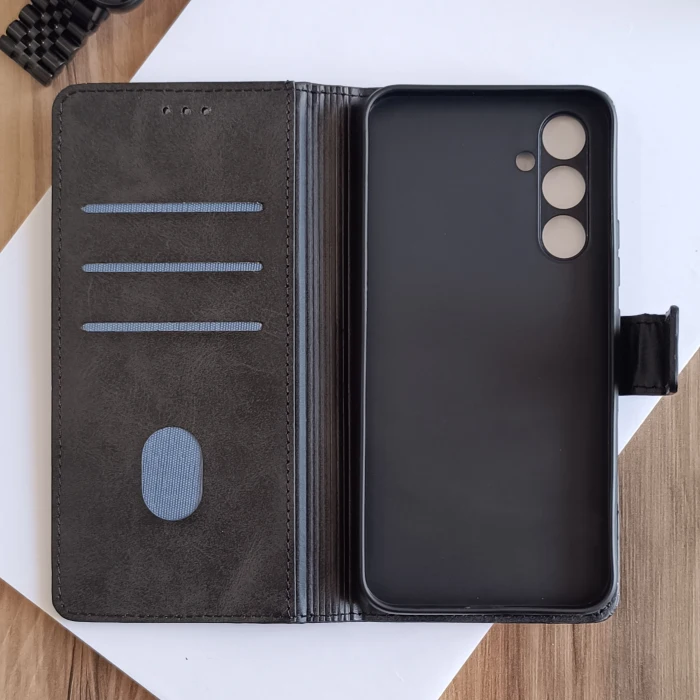کیف چرمی موبایل مگنتی محافظ لنز دار Samsung Galaxy A54 - مشکی