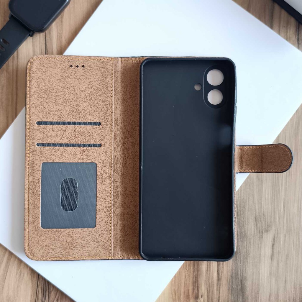 کیف چرمی موبایل مگنتی محافظ لنز دار  Samsung Galaxy A07 - سرمه ای