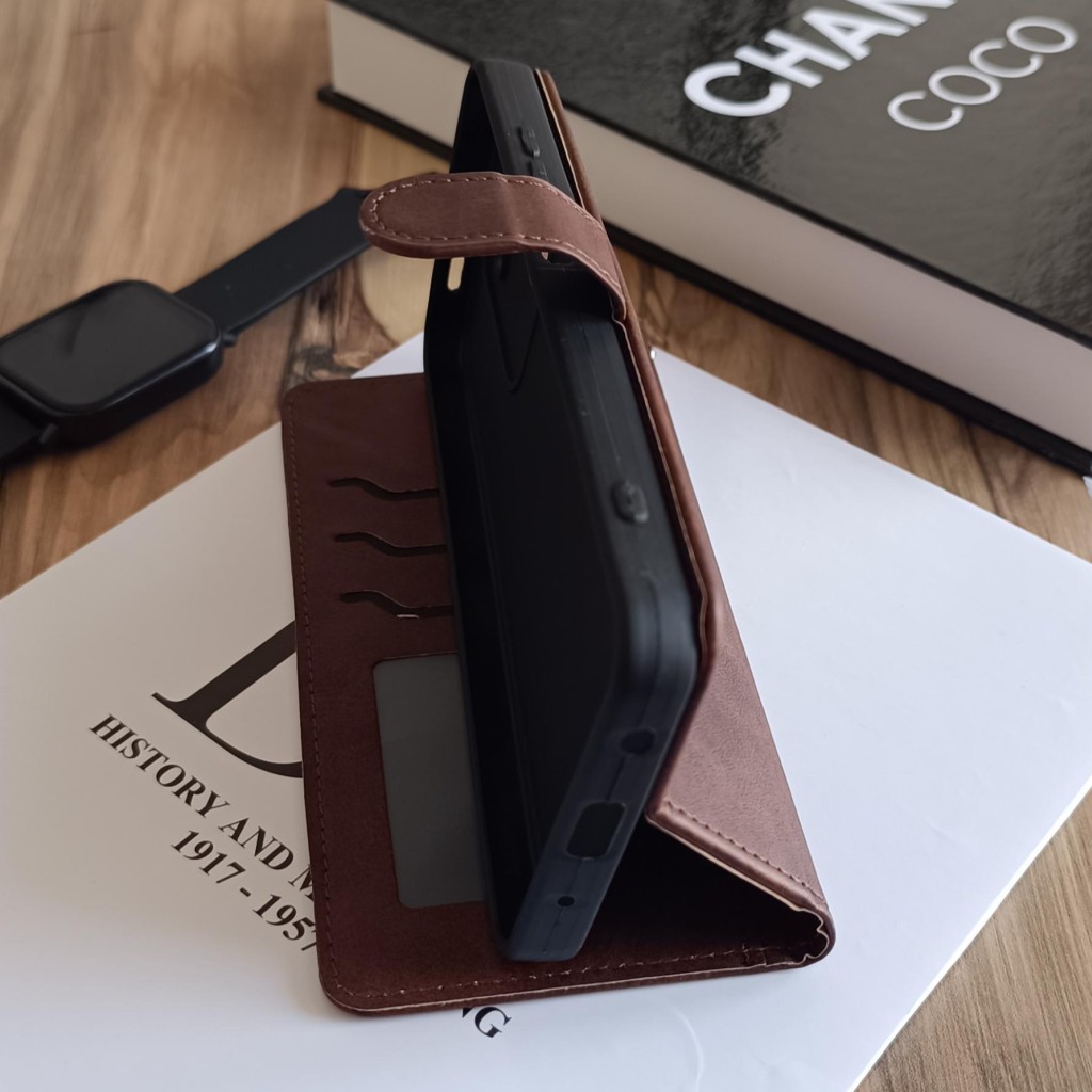 کیف چرمی موبایل مگنتی محافظ لنز دار Xiaomi Redmi A5 - قهوه ای تیره