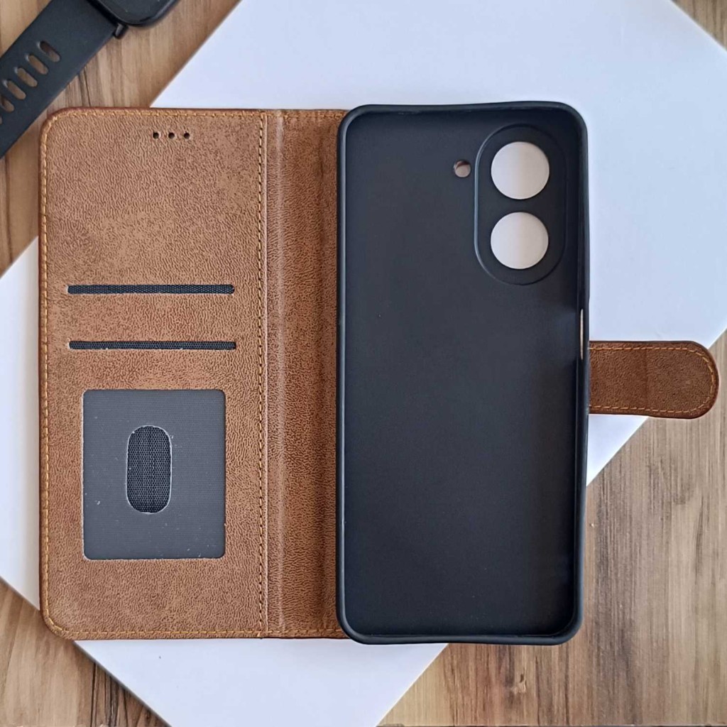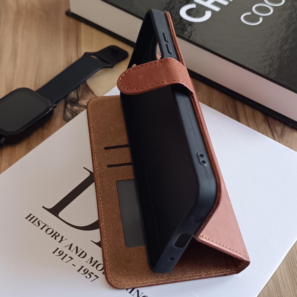 کیف چرمی موبایل مگنتی محافظ لنز دار Xiaomi Redmi A5 - قهوه ای