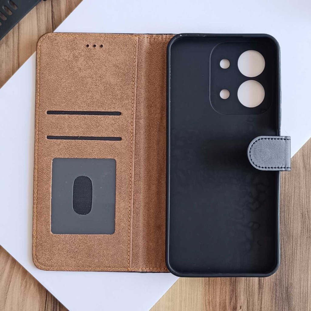 کیف چرمی موبایل مگنتی محافظ لنز دار  Xiaomi Redmi 15C  - مشکی