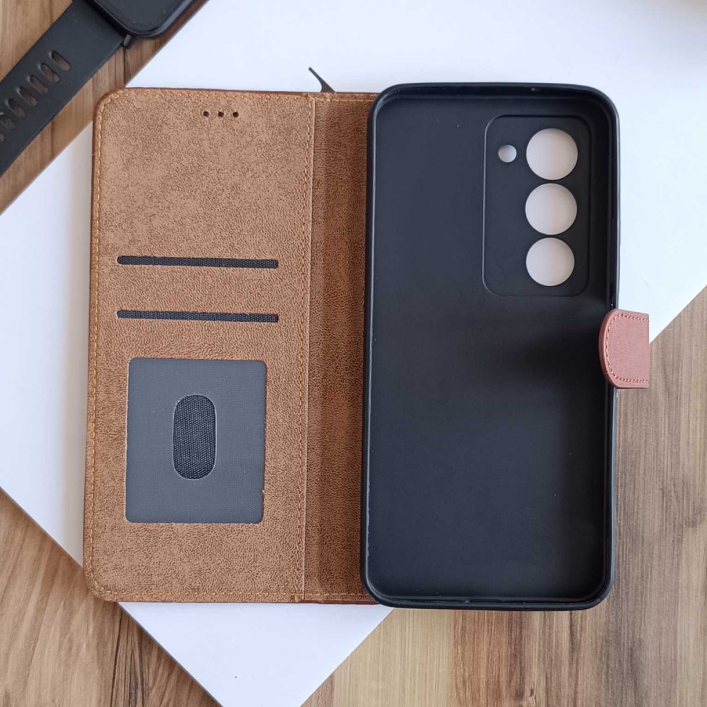 کیف چرمی موبایل مگنتی محافظ لنز دار Xiaomi Redmi 15 - قهوه ای