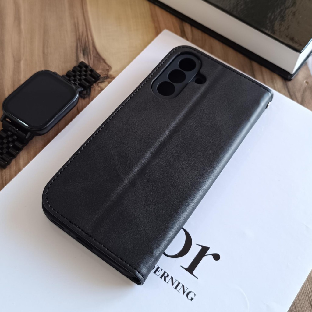 کیف چرمی موبایل مگنتی محافظ لنز دار Samsung Galaxy S23 FE - مشکی