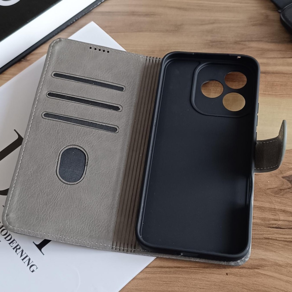 کیف چرمی موبایل مگنتی محافظ لنز دار  Honor 400 Lite - طوسی