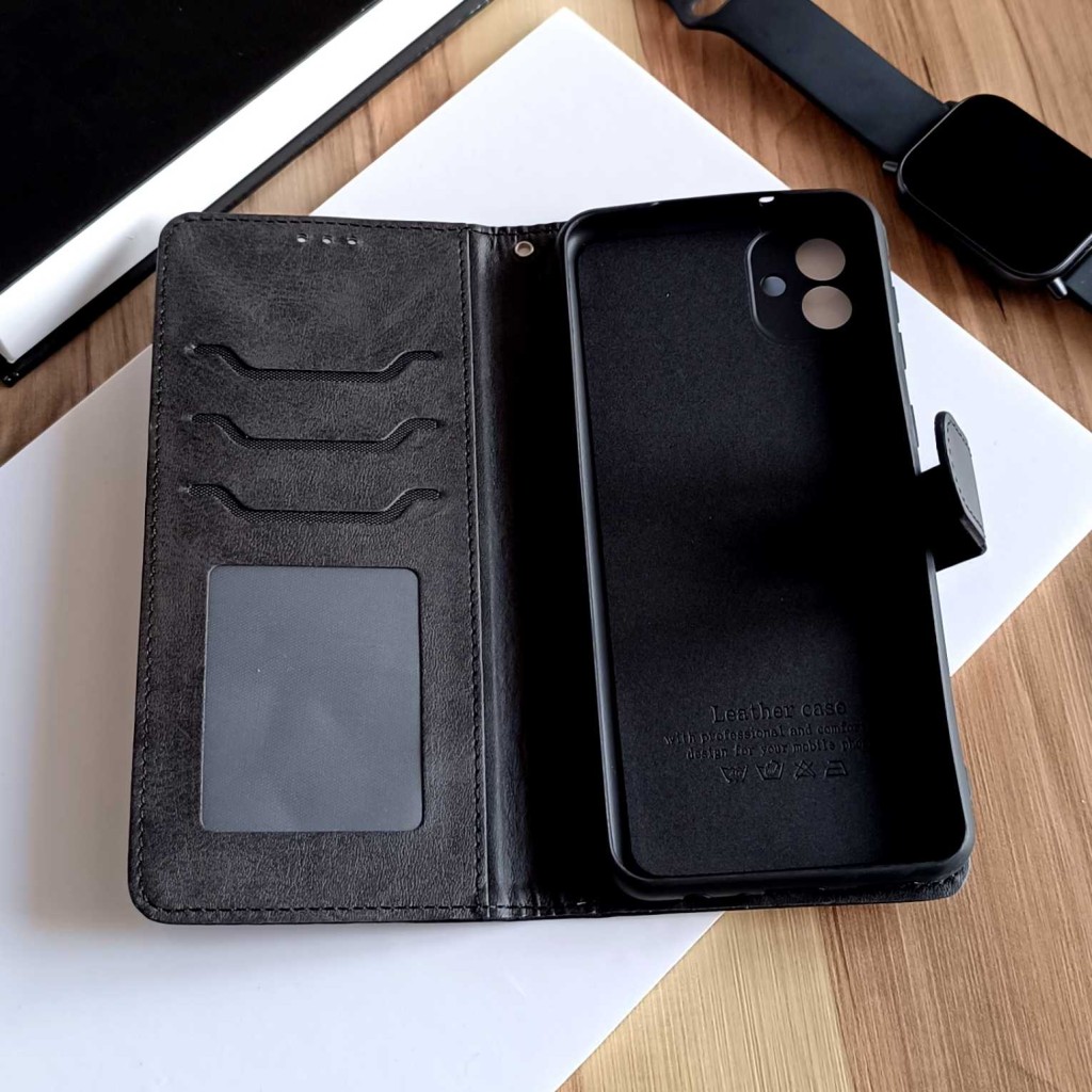 کیف چرمی موبایل مگنتی محافظ لنز دار Samsung Galaxy A04 - مشکی