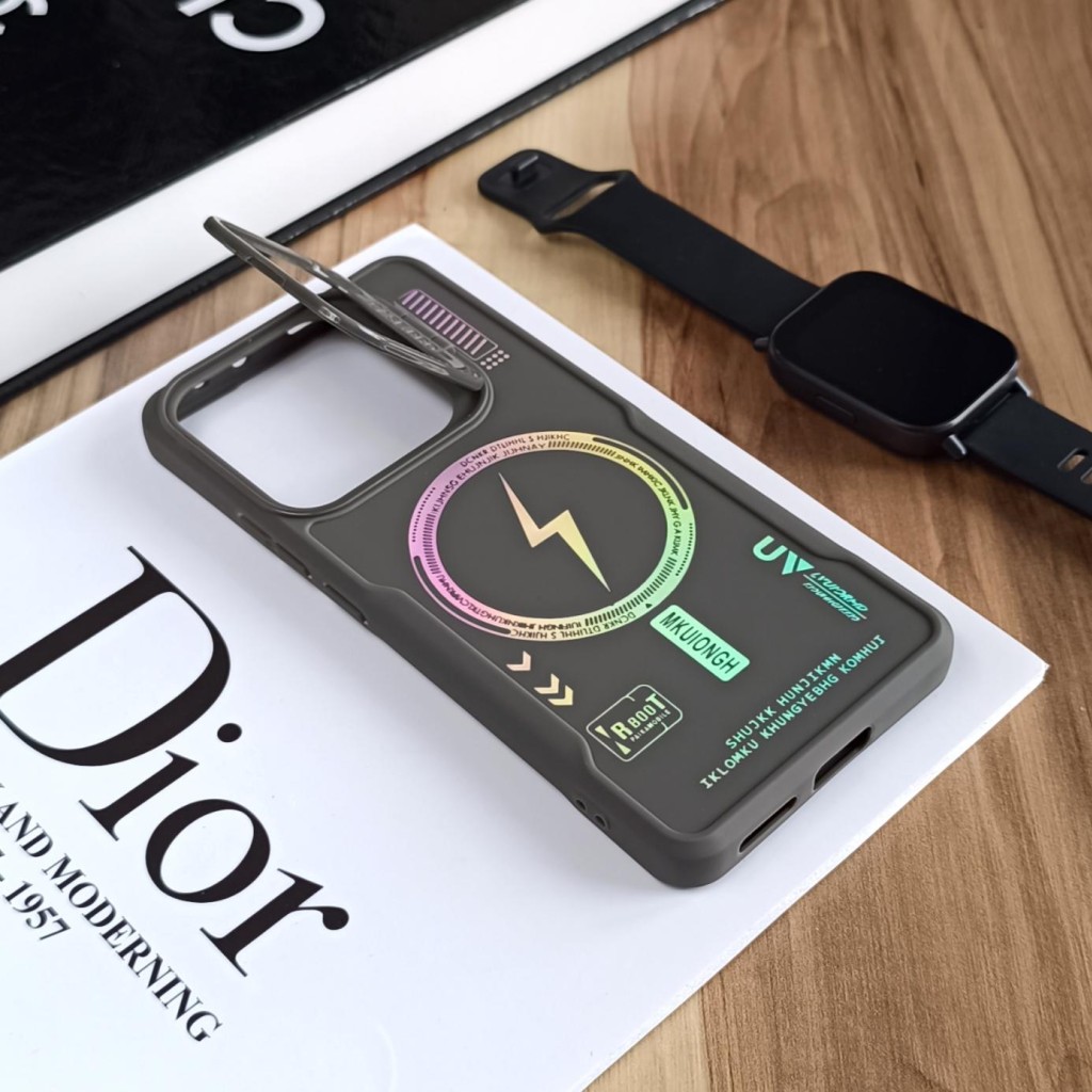 قاب Case Pro لنز استند شو طرح Magsafe مناسب Xiaomi Redmi Note 14 4G - خاکستری