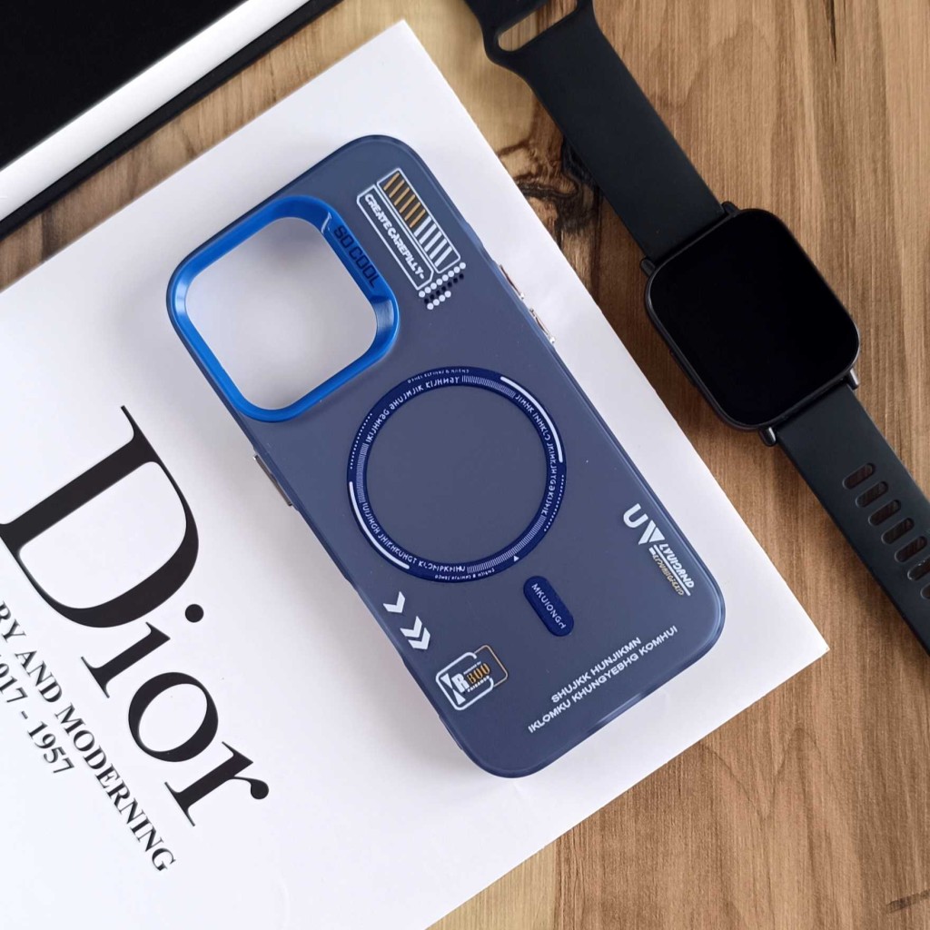قاب SO COOL طرح مگ سیف هولوگرامی UV محافظ لنز شفاف مناسب Apple Iphone 16 Pro- آبی